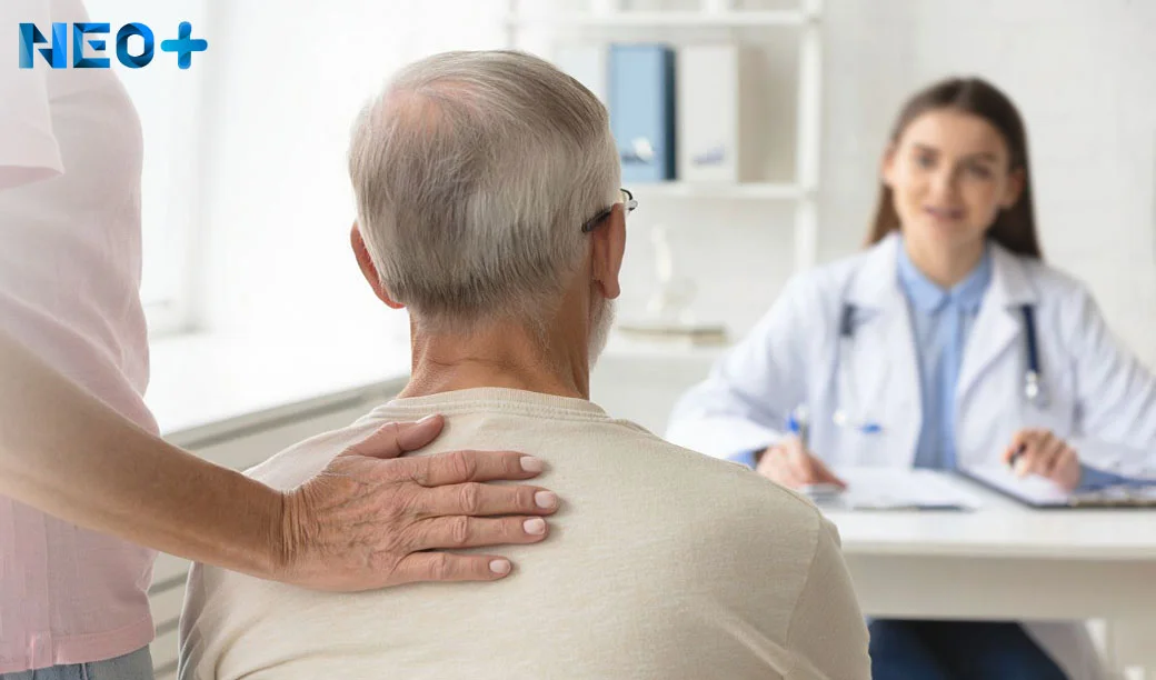 Врач положил руку на плечо пациента